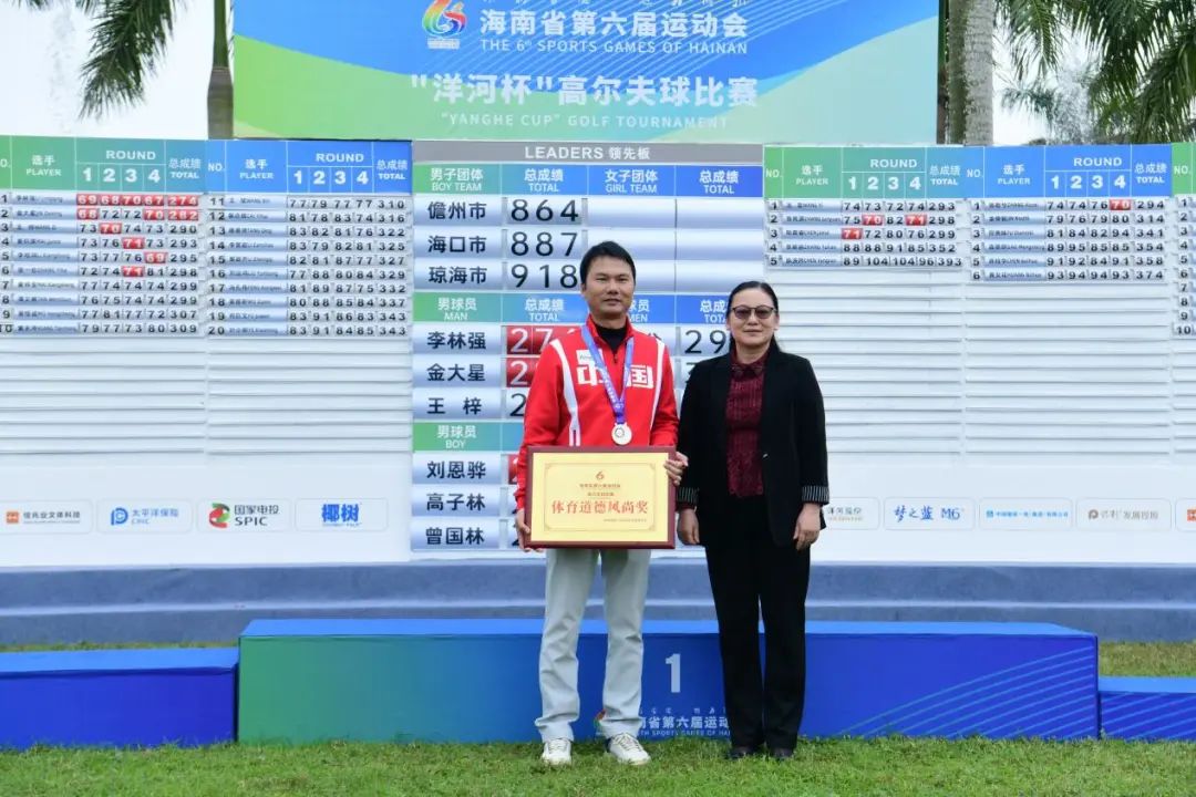经过4轮72洞角逐,海南省第六届运动会高尔夫球比赛于12月7日下午在儋州收杆。海口高尔夫球队包揽了4个组别的个人赛金牌,获得4金2银1铜,其中李林强成功卫冕成年组男子个人赛冠军,张若兮获得成年组女子个人赛冠军,刘恩骅、王壹分别获得青少年组男、女子个人赛冠军,张隽源获得青年组女子个人赛亚军,王梓获得成年组男子个人赛季军。此外,海口高尔夫球队还获得成年组男子团体亚军,以及体育道德风尚奖。