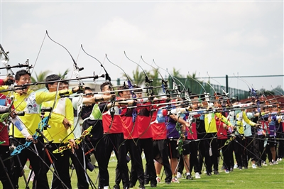 国家射箭队在海口观澜湖基地冬训。 海口观澜湖基地供图