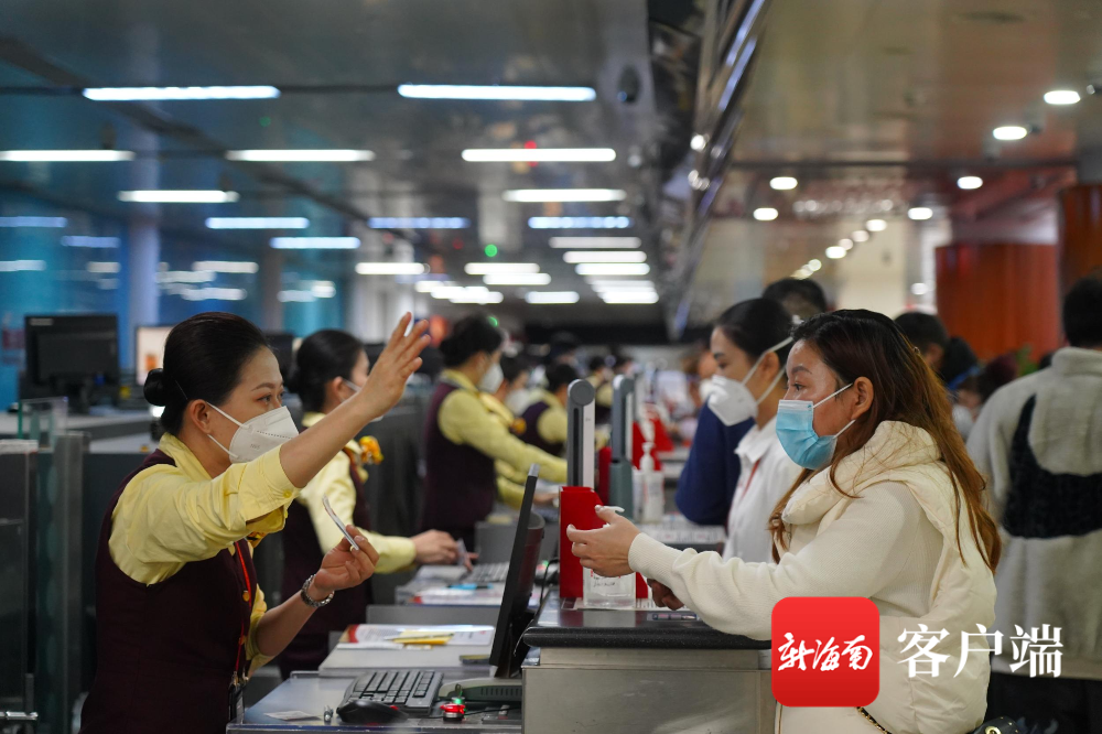 值机人员正在为旅客办理登机手续。海口美兰国际机场供图