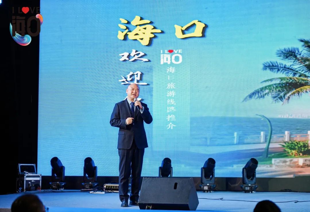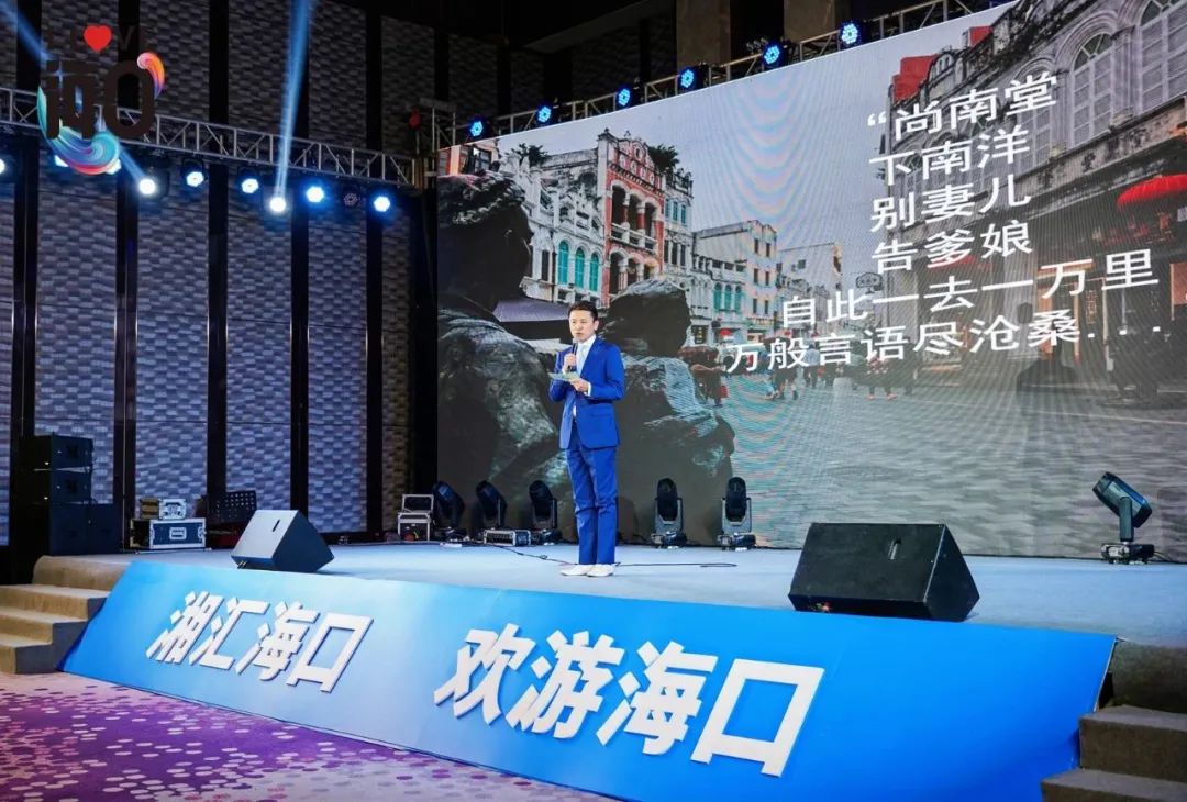 海口市旅行社协会秘书长麦伟文隆重推介了海口精品旅游线路,多样的旅游景点、网红打卡点、骑楼文化、夜市美食……向来宾们"安利"了海口多姿多彩的潮玩文化,展示了一边度假娱乐一边免税购物的新玩法。