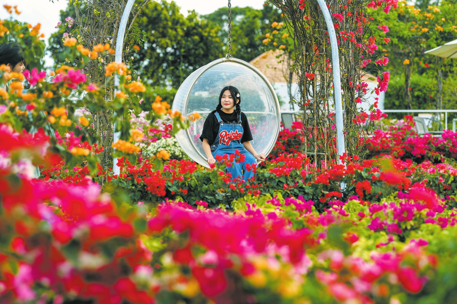 近日,在海口三角梅共享农庄内,争相开放的三角梅吸引市民游客前来游玩赏花、拍照打卡。 本报记者苏弼坤摄