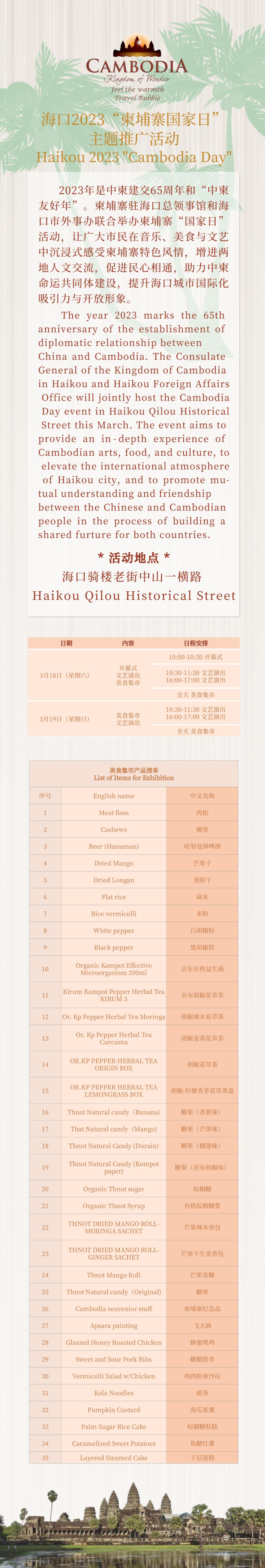 活动 | 海口2023年柬埔寨国家日 3月18-19日在骑楼老街举行