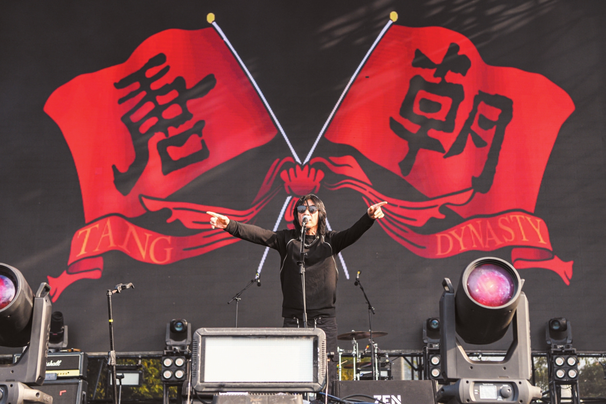 ①3月19日,在“2023海口迷笛音乐节”现场,唐朝乐队为歌迷倾情献唱。