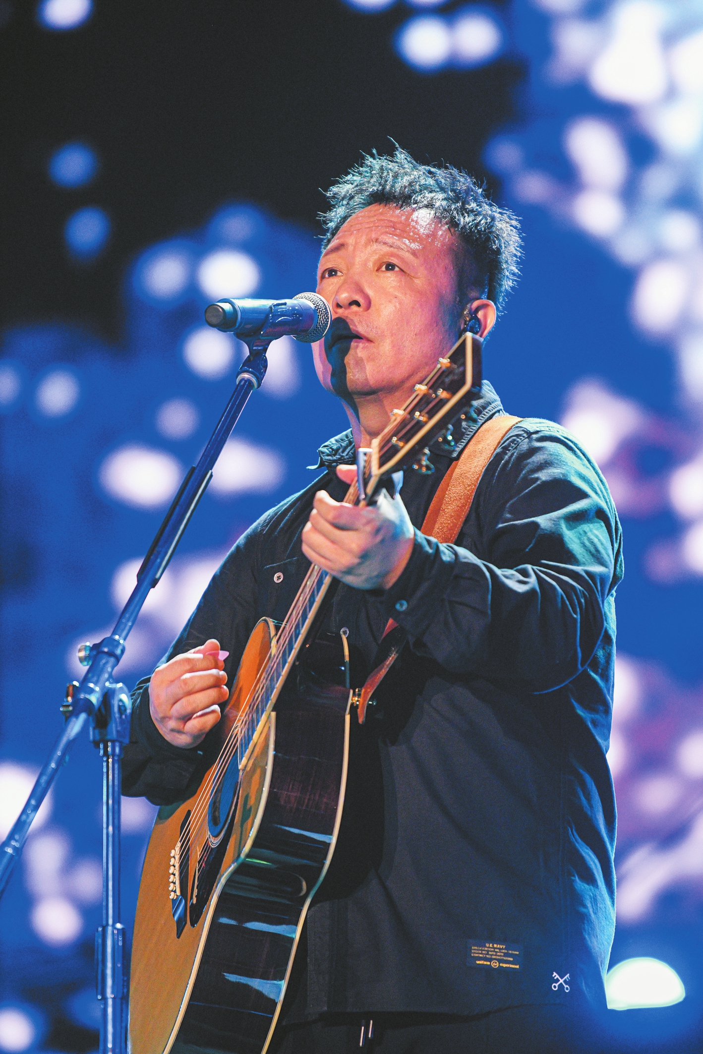 ②3月19日,“2023海口迷笛音乐节”落下帷幕,许巍压轴登场演唱。