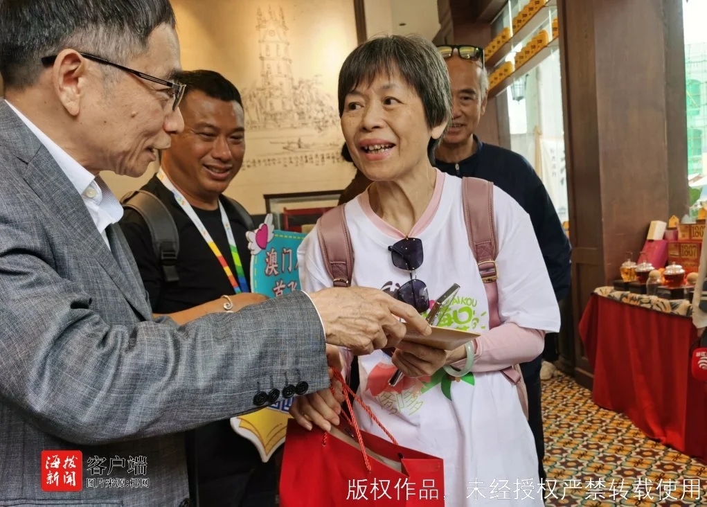 韩炬光表示,时隔三年再次接待入境旅游团队,他会提前几天收集并了解游客们的旅游需求、饮食需求等,提前做好规划,让大家在海南玩得开心,感受海南人民的淳朴。另外,他们还为每一位游客及带团领队献上海南精品手办礼。