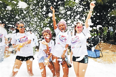 二○一八年欢乐节陵水分会场活动吸引了众多外国游客参加。武昊 摄