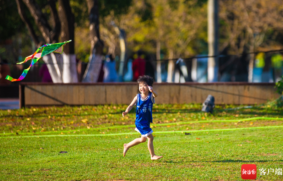 小朋友在万绿园放风筝 新海南客户端记者 李昊 摄