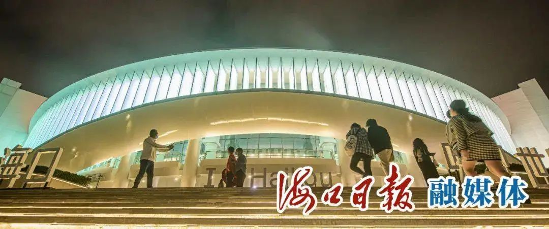 夜幕降临,海口湾演艺中心流光溢彩,迎接前来观看演出的观众。(资料图)