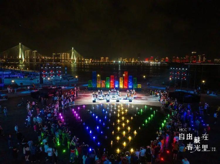 伴着海浪和海风,喷泉随着音乐律动,或闲情肆意漫步、或约会闲谈略饮,华彩·海口湾广场市集,尽显滨海城市特色。在这里海风吹拂脸颊,聆听一曲爵士乐,解锁闲适的港湾夜生活。