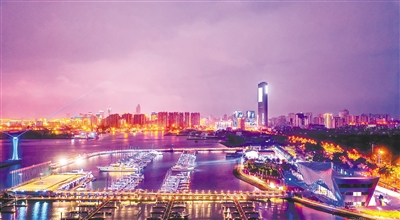 夜景下的第三届消博会游艇展现场。通讯员 郝晓玲 摄