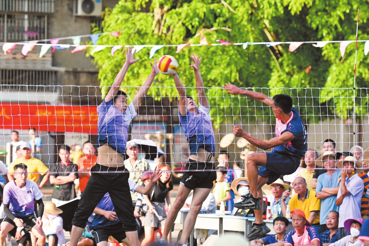 5月3日,永兴镇2023年荔枝月首届“农行杯”排球邀请赛决赛在永兴人民广场开赛,美东村与博强村代表队在激烈角逐。 本报记者 石中华 摄