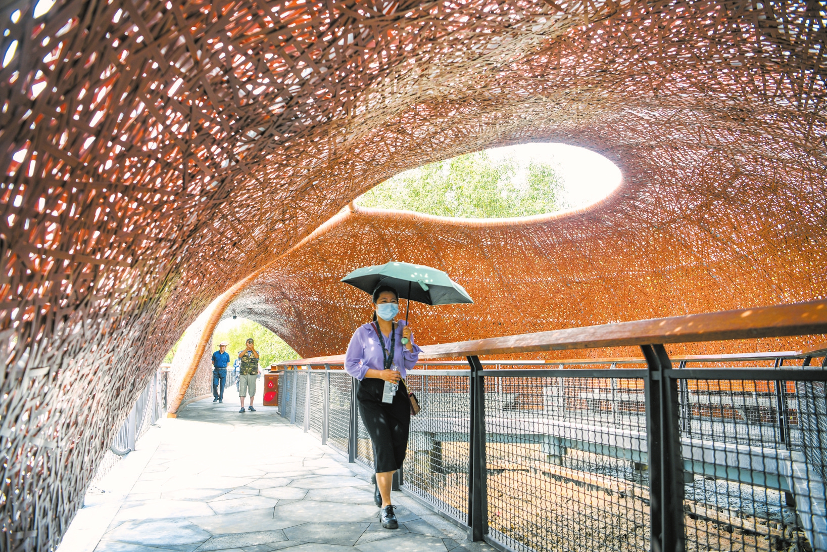 ▲4月29日,位于美兰区演丰镇的海口红树林旅游区开园试营业,市民游客在红树林科普栈道上参观游览。本报记者 康登淋 摄