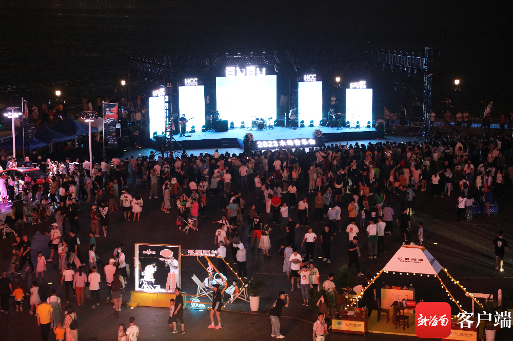 海风轻拂,市民游客穿行在东坡老码头,或驻足观赏演出,或品味享受美食,享受着椰城夜晚的悠闲时光。