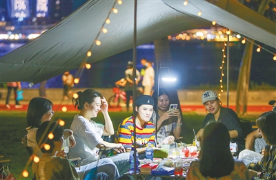 日前,“向海而歌·海口宠粉季”2023年城市海岸派对在海口世纪公园举办。市民游客在公园的空旷处搭帐篷、铺餐布,一边闲聊,一边享用美食,度过愉快的假日时光。