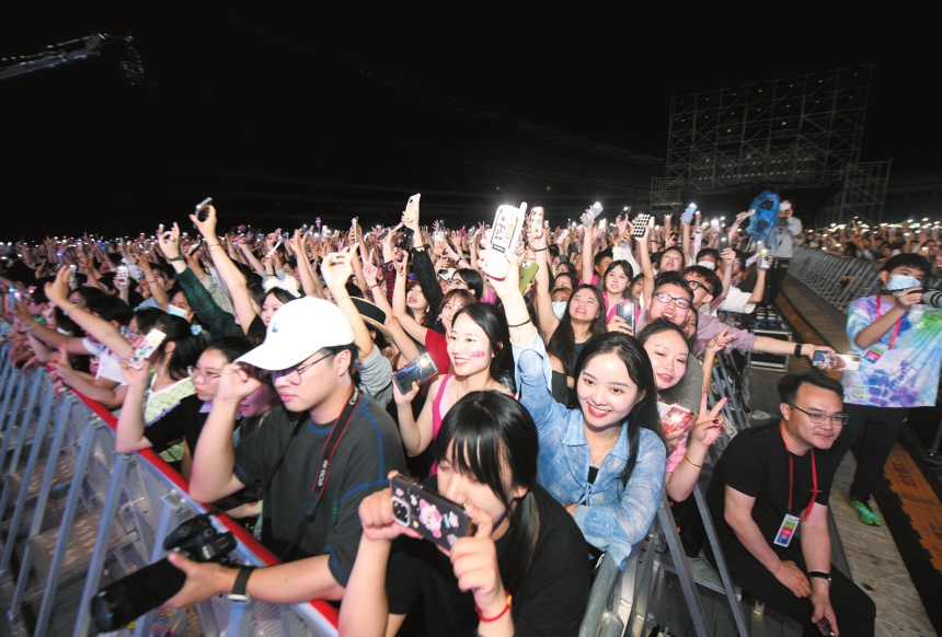 ③城市音乐节——及冠海口站,在海口五源河体育场精彩举行,现场观众热情洋溢,掌声不断。