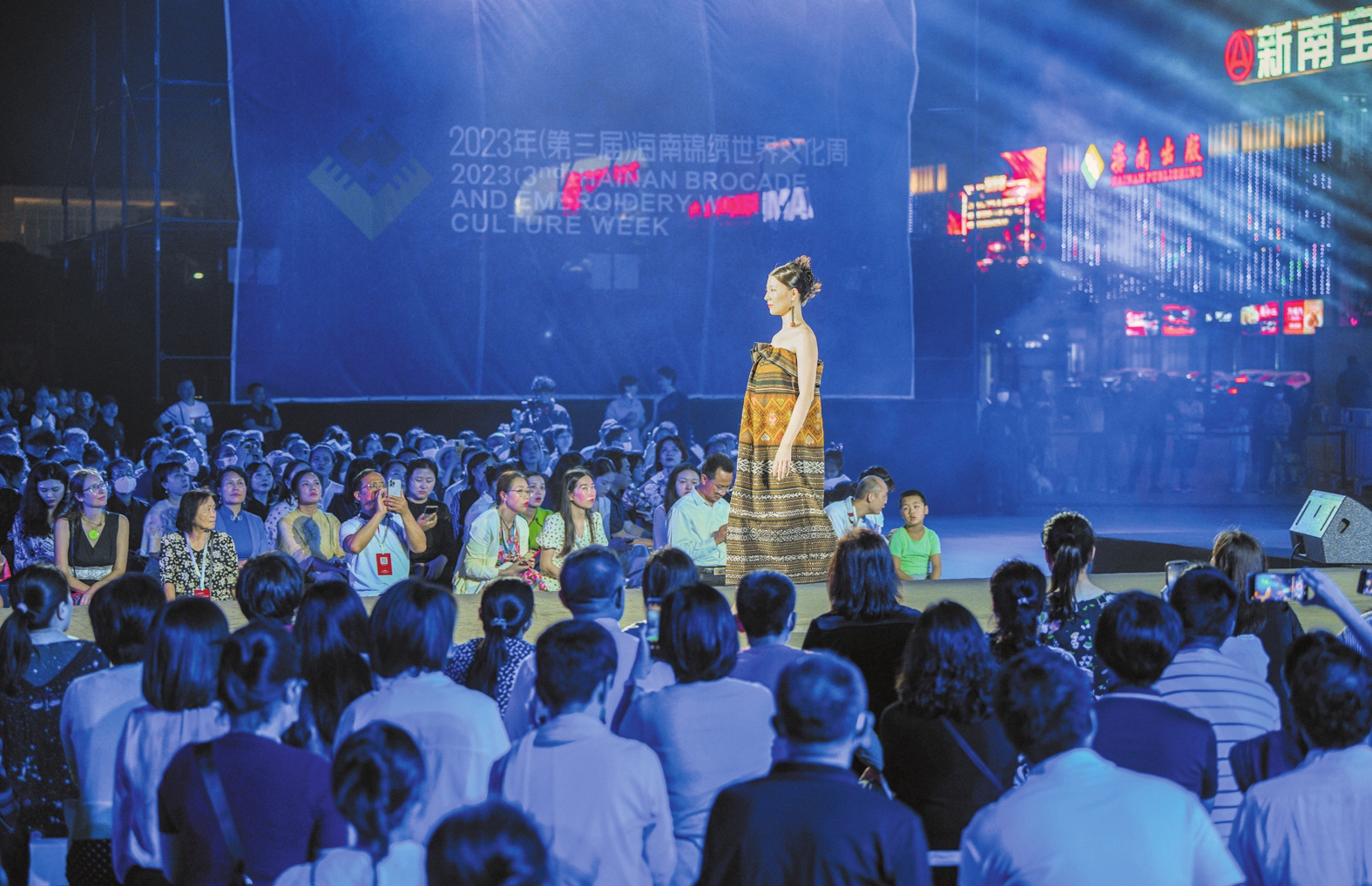 ④2023年(第三届)海南锦绣世界文化周开幕,图为活动现场的“锦绣世界”时装秀。