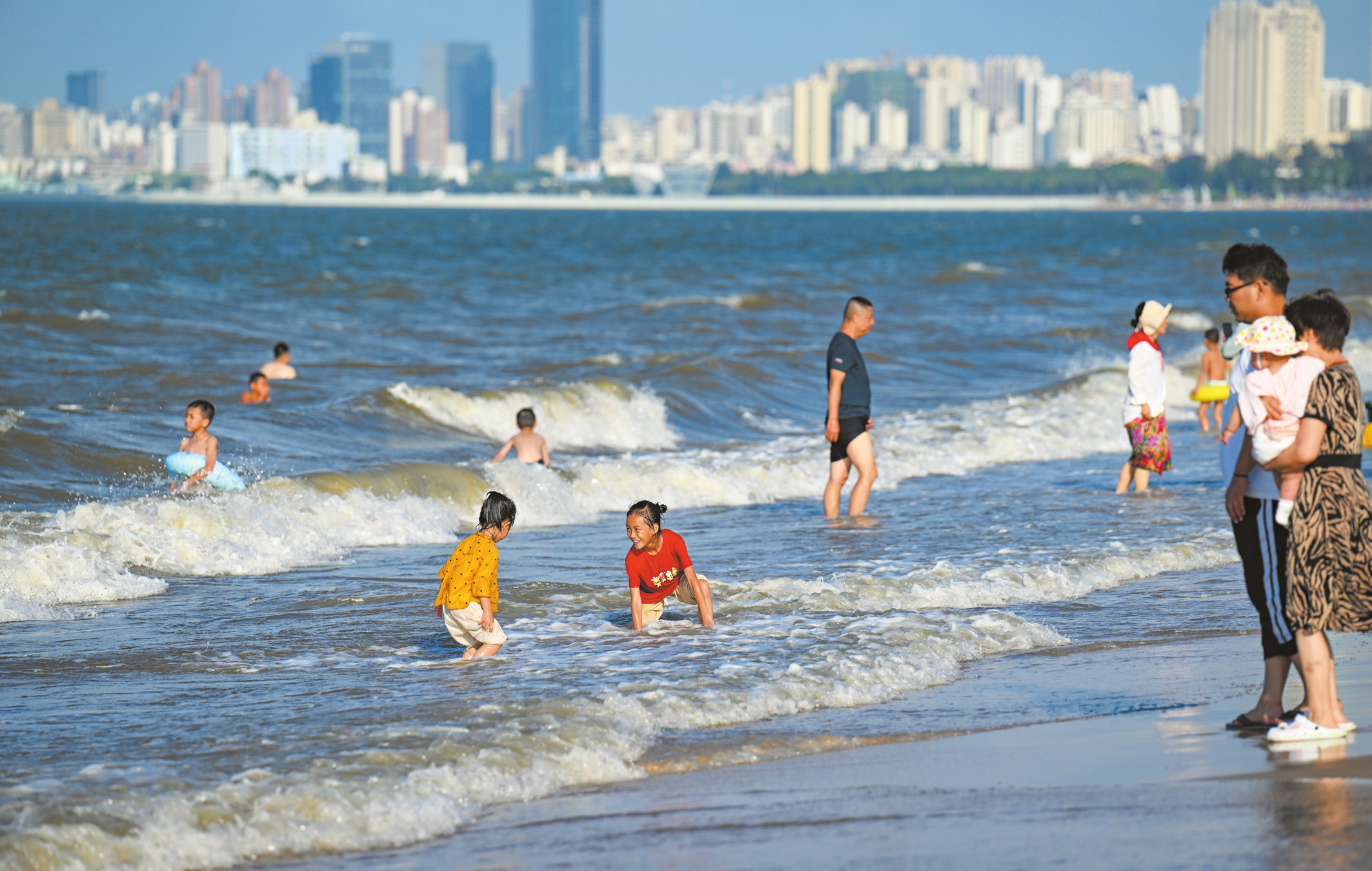 夏季炎炎,海口海滨优美的自然风光和凉爽的海风吸引了众多市民游客前来消夏纳凉、开心度夏。