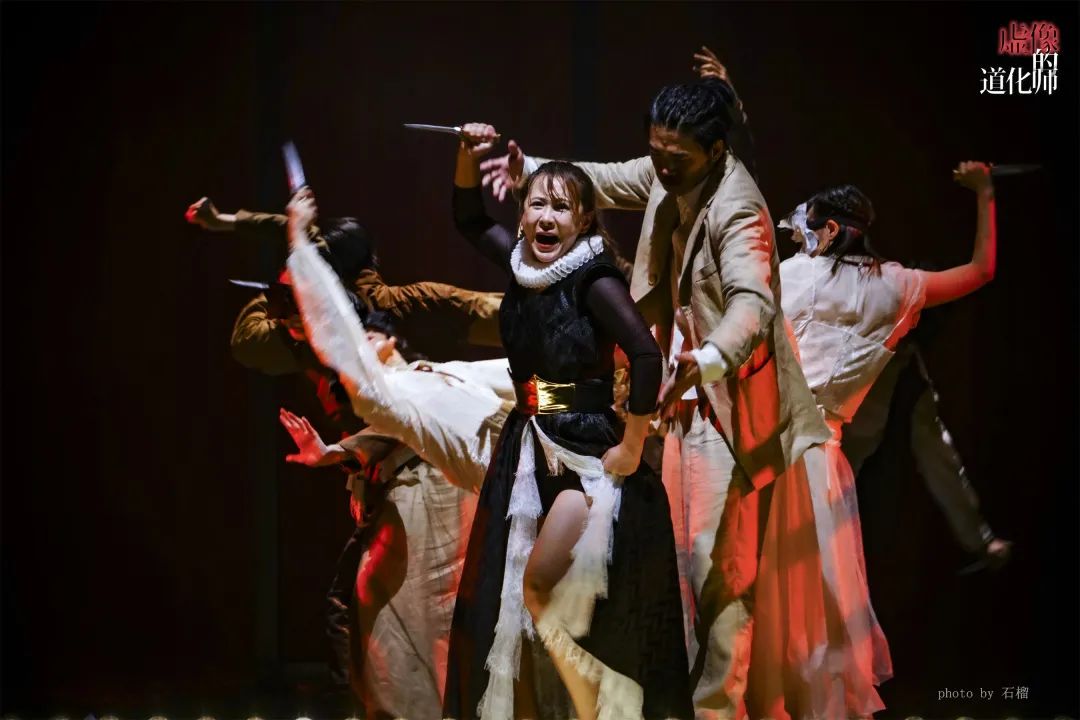 剧中人排练与演出的时间推进,以及所排练剧目的主题表达,皆与三拓旗演员们演出《虚像的道化师》的时间、主题表达形成了某种互文,达成一种结构上的镜像效果。