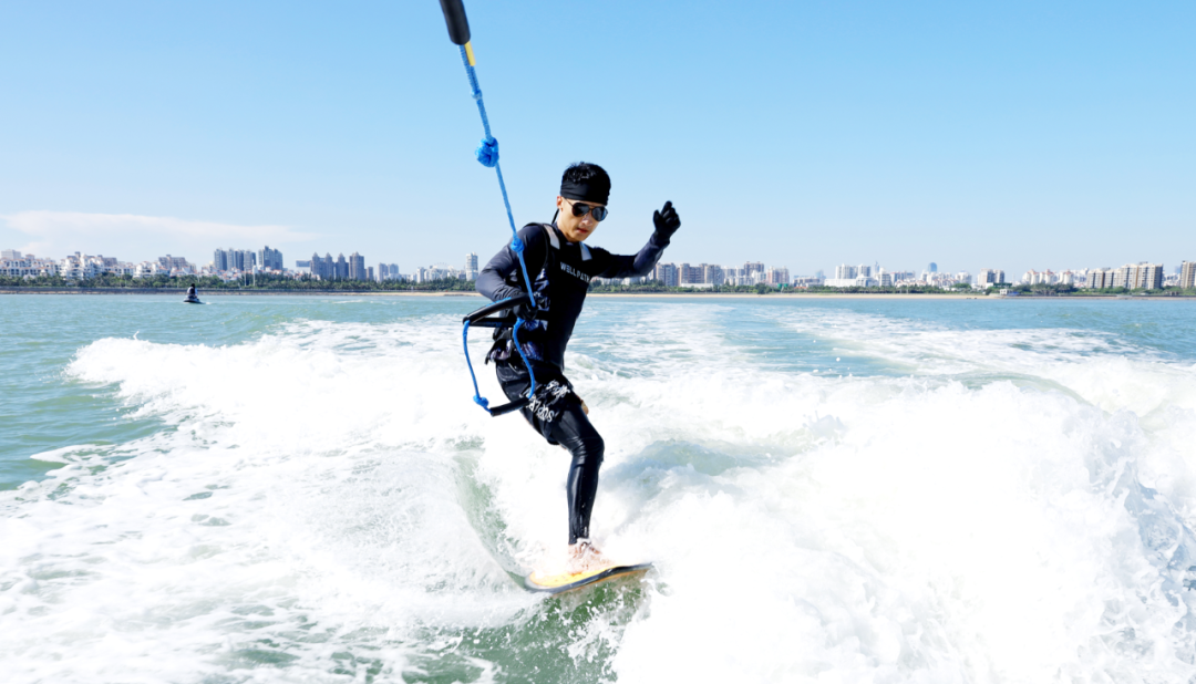体验项目:尾波冲浪1小时包船周中1399元、周末假日1599元;摩托艇30分钟600元;水上飞鱼30分钟888元。