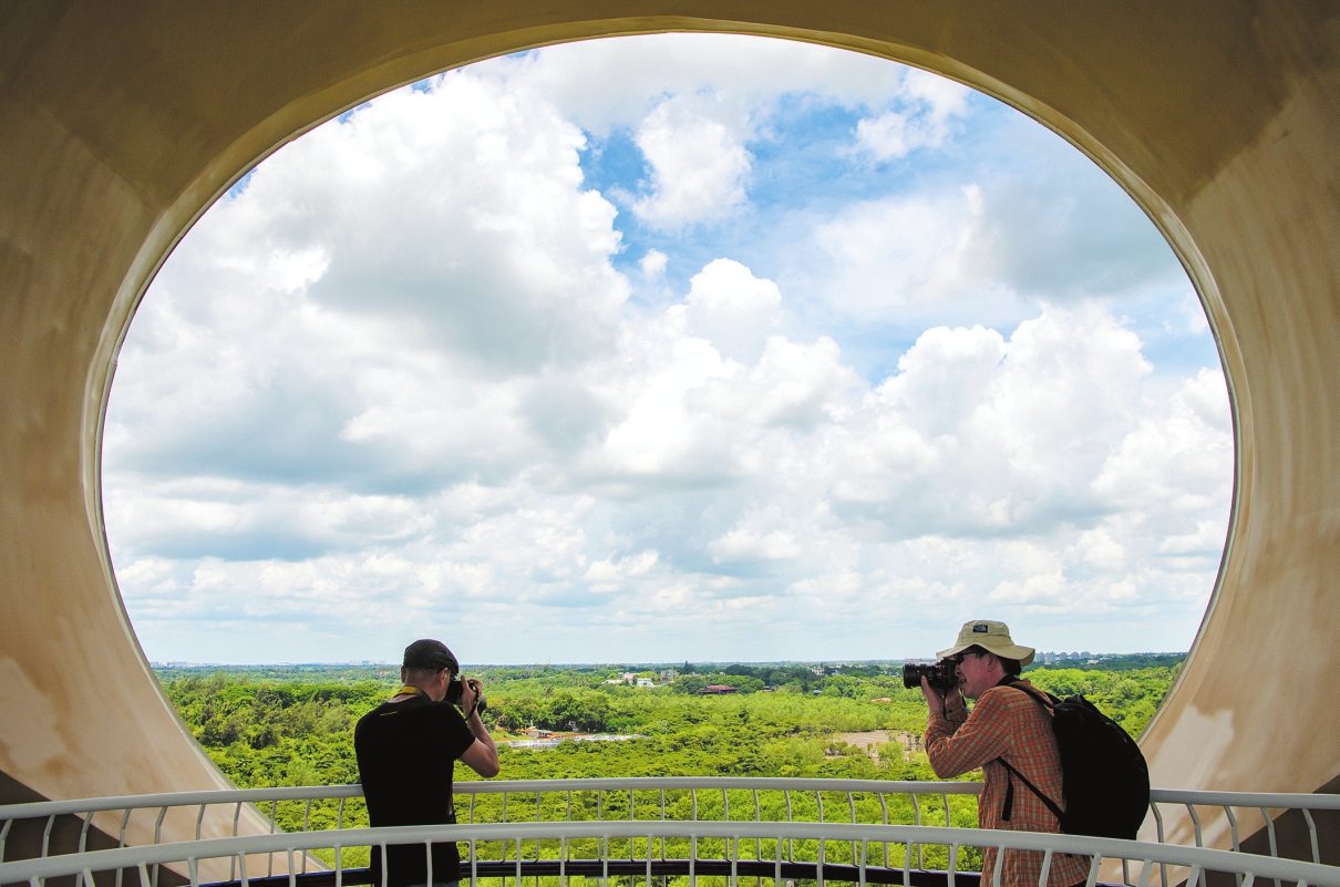 在五源河国家湿地公园,放眼望去,满眼的绿。摄影师岱天荣对海口优良的生态环境感叹不已,“海口的绿跟别的地方不一样,更加富有生机和活力,未来几天,我将用镜头展现海口这座城市的多元之美。”