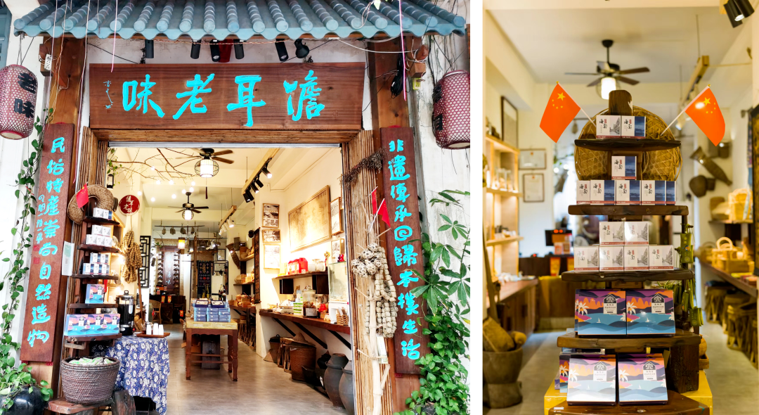 在骑楼里的儋耳老味,汇集了各种富有海南传统非遗文化的特色产品,有老盐、黎锦、树皮衣、黑糖、山兰酒、藤编、黎陶、牛皮凳等,特色产品有椰子油、五指山白沙茶叶、胡椒、野生士蜂蜜、老盐衍生产品等商品种类繁多,可以在这一站式买到想要的海南民俗特色产品。6月29日-7月2日周杰伦演唱会期间,粉丝手伴—老盐皂、老盐浴球,凭票购买4.8折。