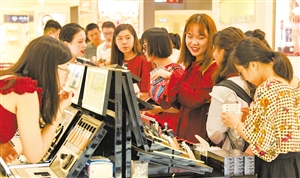 “火星”演唱会期间,众多外地来的观众在海口日月广场免税店内挑选商品。 本报记者 苏弼坤 摄