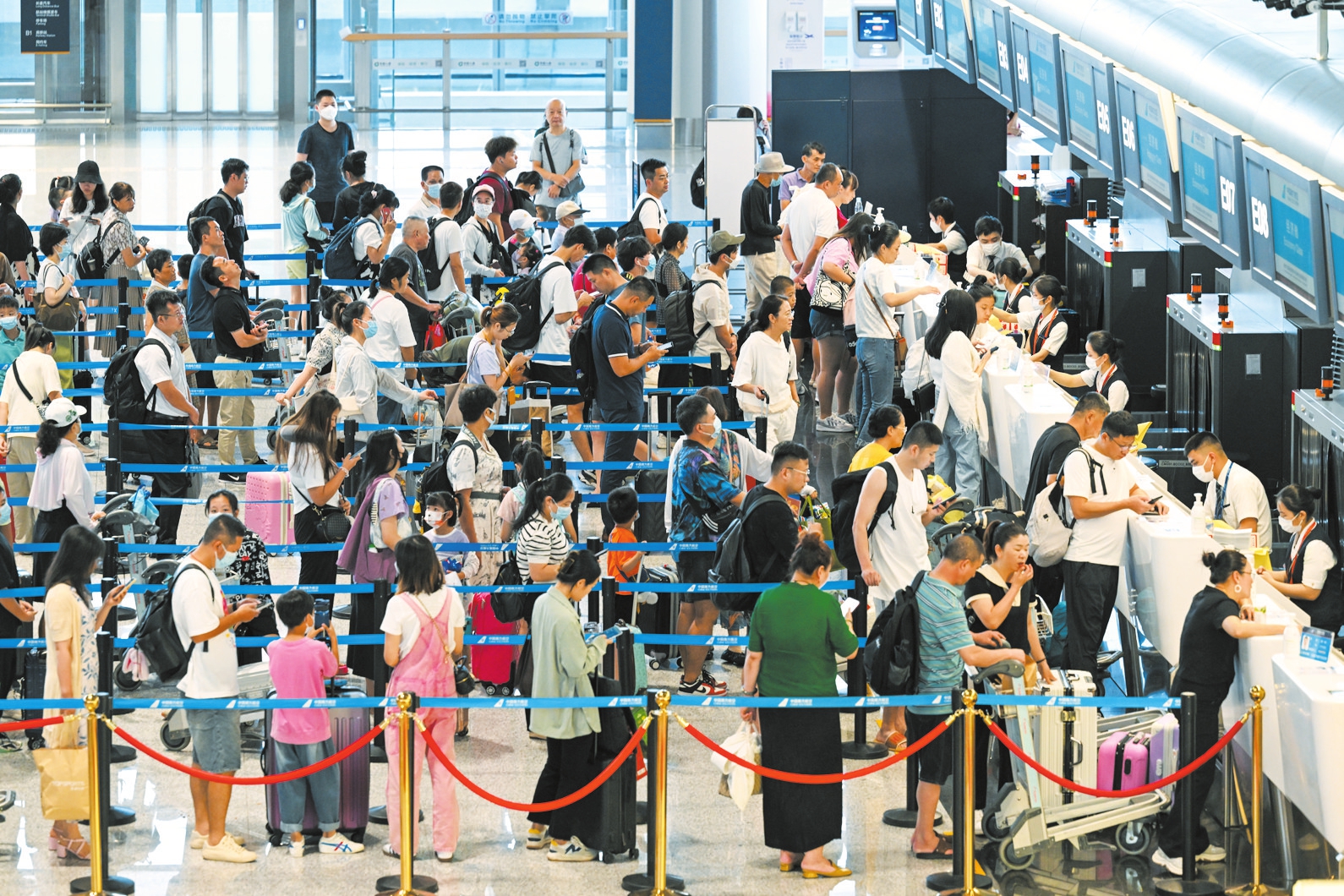 近日,旅客在海口美兰国际机场T2航站楼内办理值机手续。