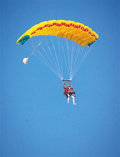 游客在儋州海花岛跳伞。本报特约记者 吴文生 摄
