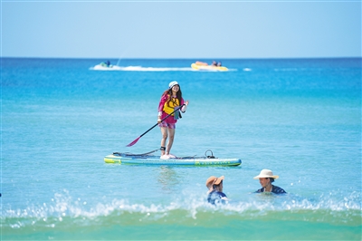 游客在万宁石梅湾体验桨板的乐趣。本报记者 李天平 摄