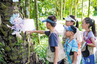 可可主题研学营小学员开启植物探索之旅。(兴隆热带植物园供图)