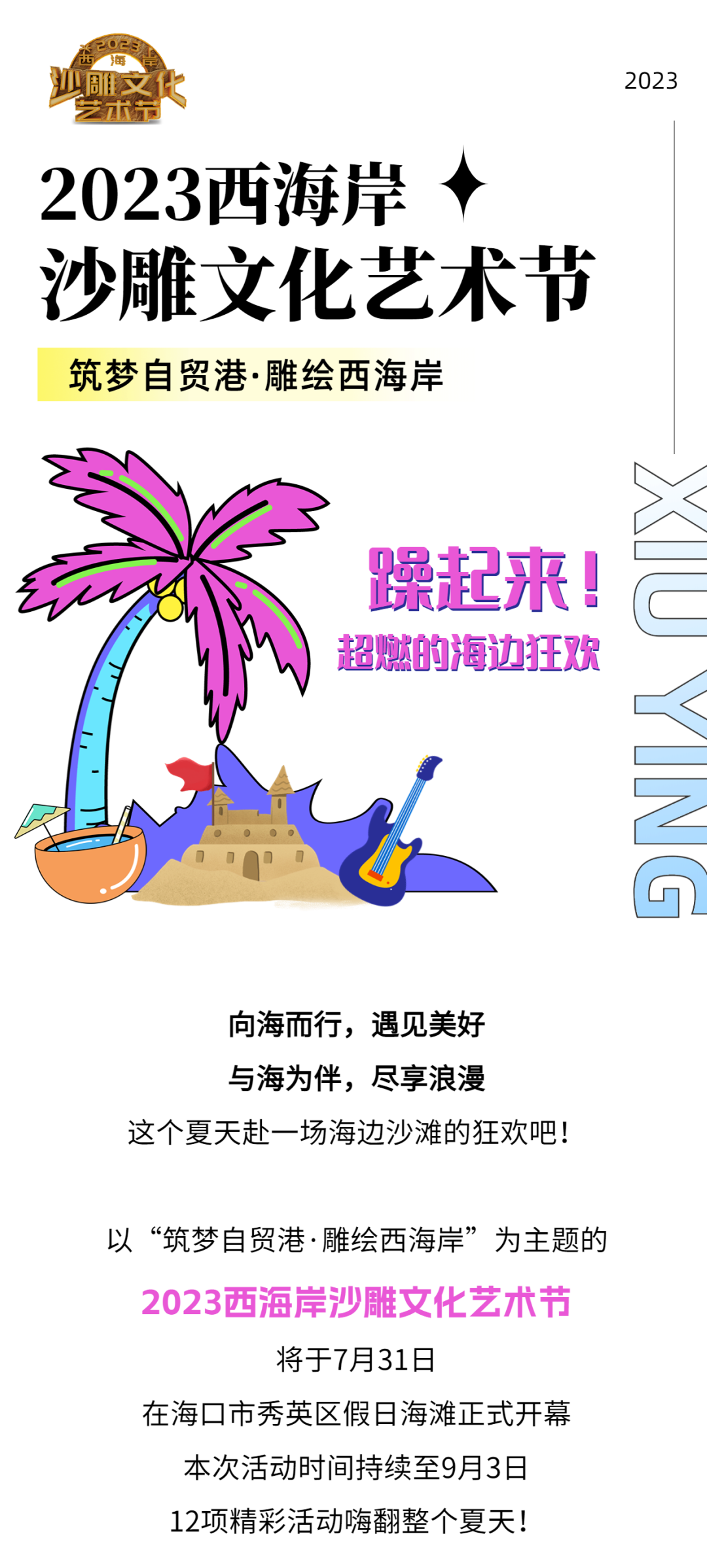 随着暑期的到来,大众出游热情高涨。海口市秀英区以消费创新、资源整合、跨界联动,打造“筑梦自贸港•雕绘西海岸”——2023西海岸沙雕文化艺术节,让潮玩运动、生活艺术、新消费餐饮等激发暑期旅文市场新活力。