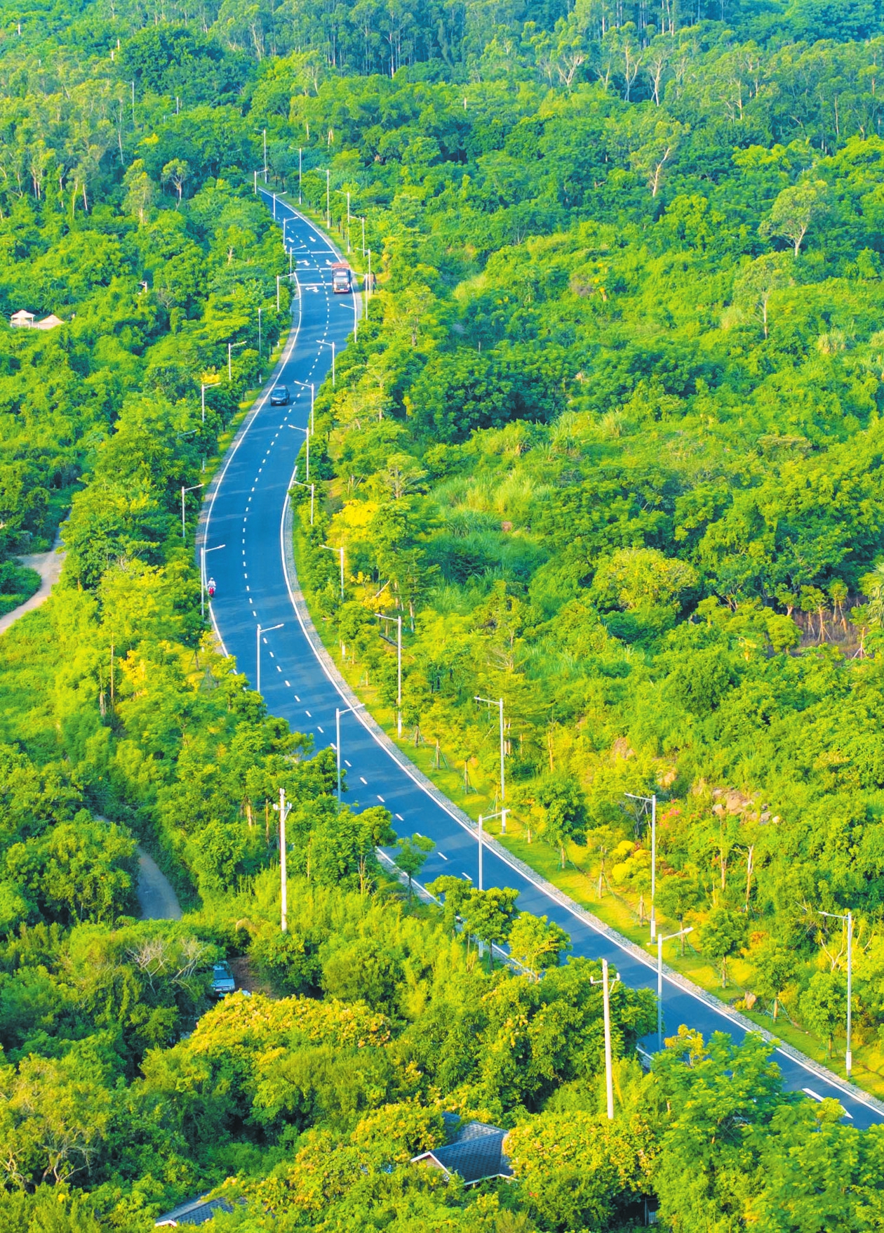 7月29日,海口火山口大道两侧绿树成荫,如同一幅色泽明艳的油画。车在路上行,人从景中过,好似“画中游”。