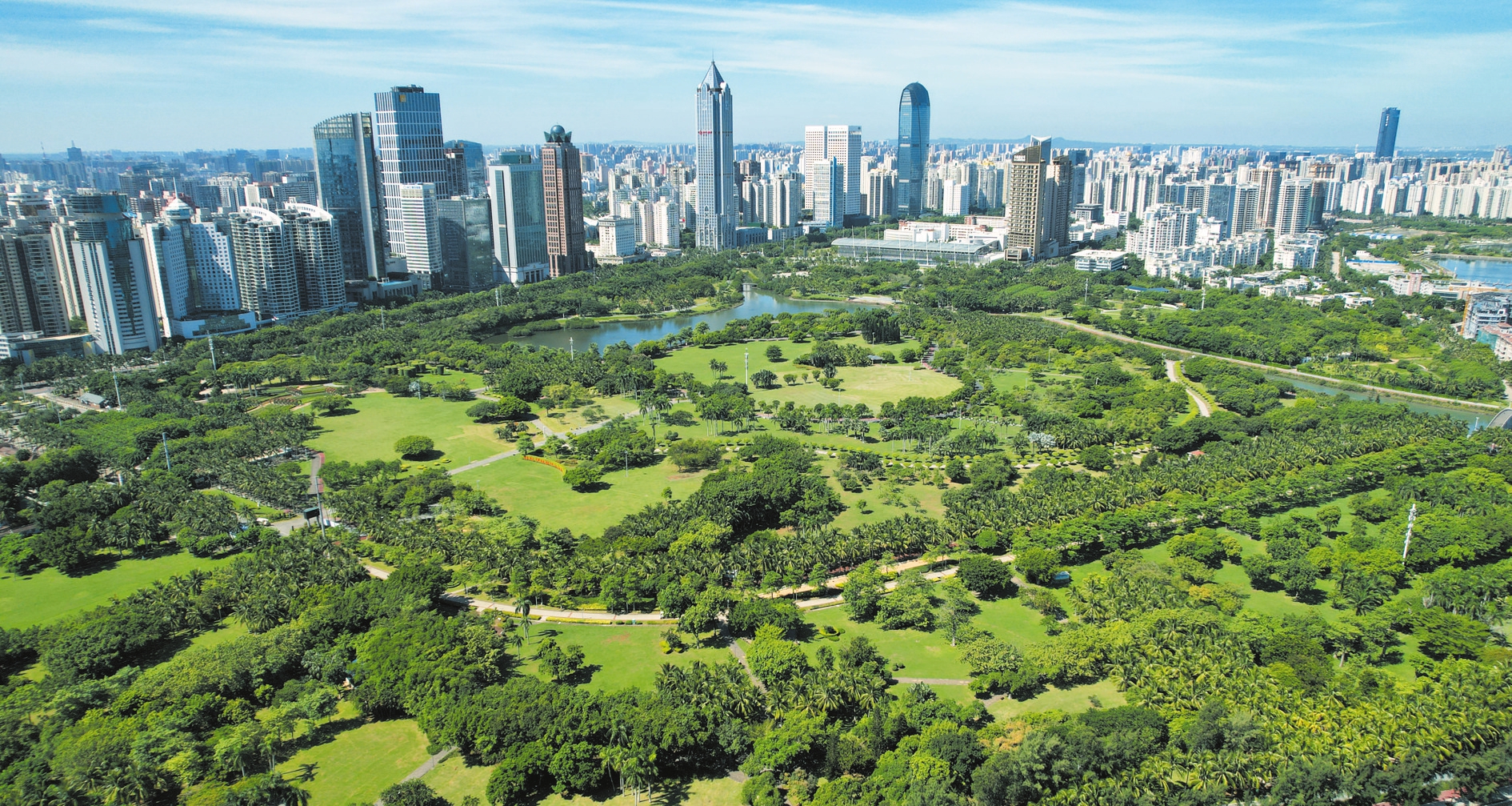 航拍海口市万绿园(无人机照片,8月9日摄)。