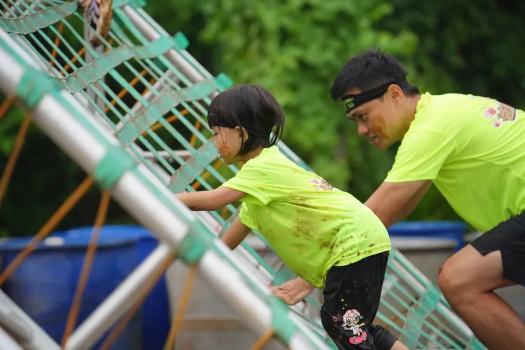 赛道沿线尤其是障碍关卡处,均安排有裁判、志愿者等工作人员,会指导参赛小选手按照规则要求完成障碍挑战或接受失败惩罚,亲子组父母还可以辅助完成相关挑战。