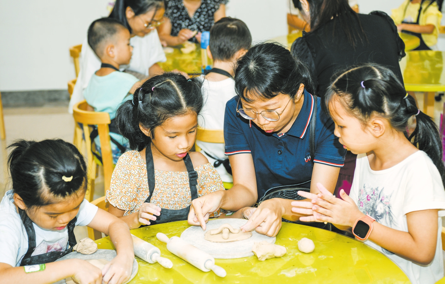 8月16日,家长孩子尽情体验陶艺的无穷乐趣。 本报记者 康登淋 摄