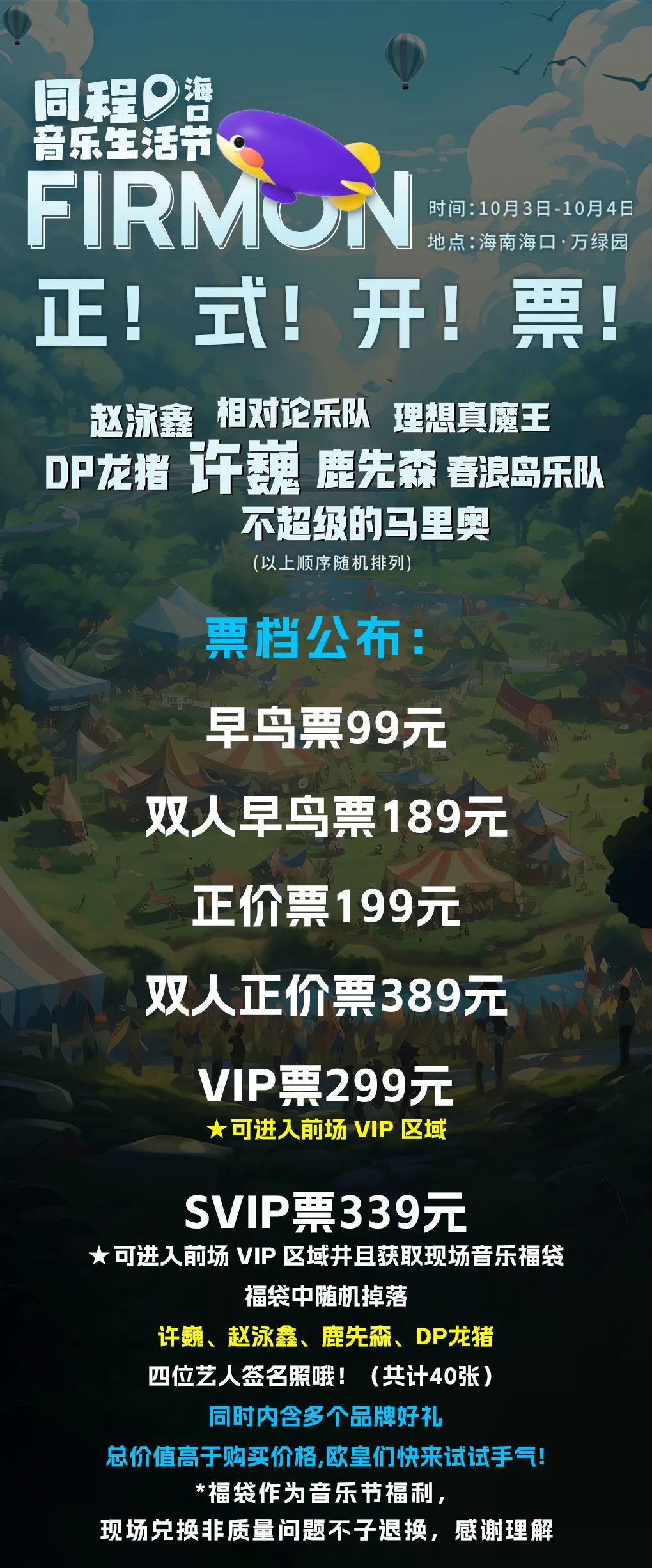 许巍赵泳鑫、鹿先森...众多明星大咖在海口万绿园等你!