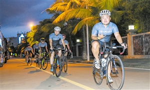 夜幕下的海口灯火辉煌,椰影婆娑,海风凉爽。海口夜骑爱好者冯全经常与朋友夜晚骑行,滨江路、白沙门公园、万绿园、西海岸的骑行慢道上经常能看到他们的身影,“放弃不必要的酒局选择骑行健身,不但可以锻炼身体,还可以将海口美丽的夜景尽收眼底”。