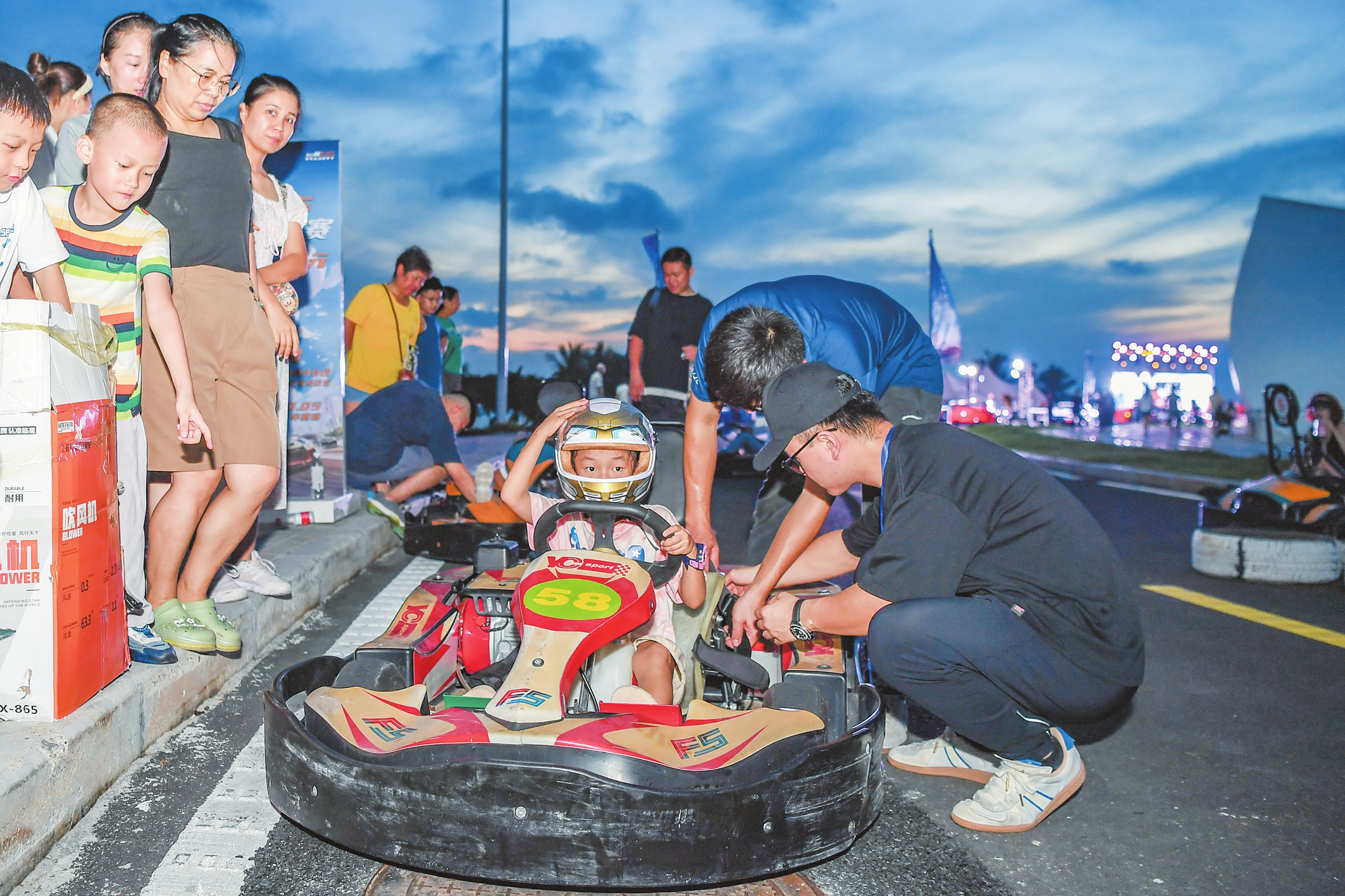 作为今年中秋国庆长假的一项重要活动,“海口杯”赛车运动嘉年华不仅为海口市民游客提供了一个全新的休闲娱乐场所,更将赛车运动推广为海口的新潮休闲体育项目。本次赛车运动嘉年华包含两大板块,其中9月29日至30日,活动在天空之山驿站举办了赛车文化嘉年华,集中了赛车、超跑、机车等展览,以及音乐live表演、卡丁车体验营、市集等,吸引了大批市民游客参与。10月1日至5日,备受期待的卡丁车全民挑战赛在海南国际卡丁车赛场举行,比赛分为儿童组、青少组、巾帼组和成人组4大组别,共有约300余名车手参赛。