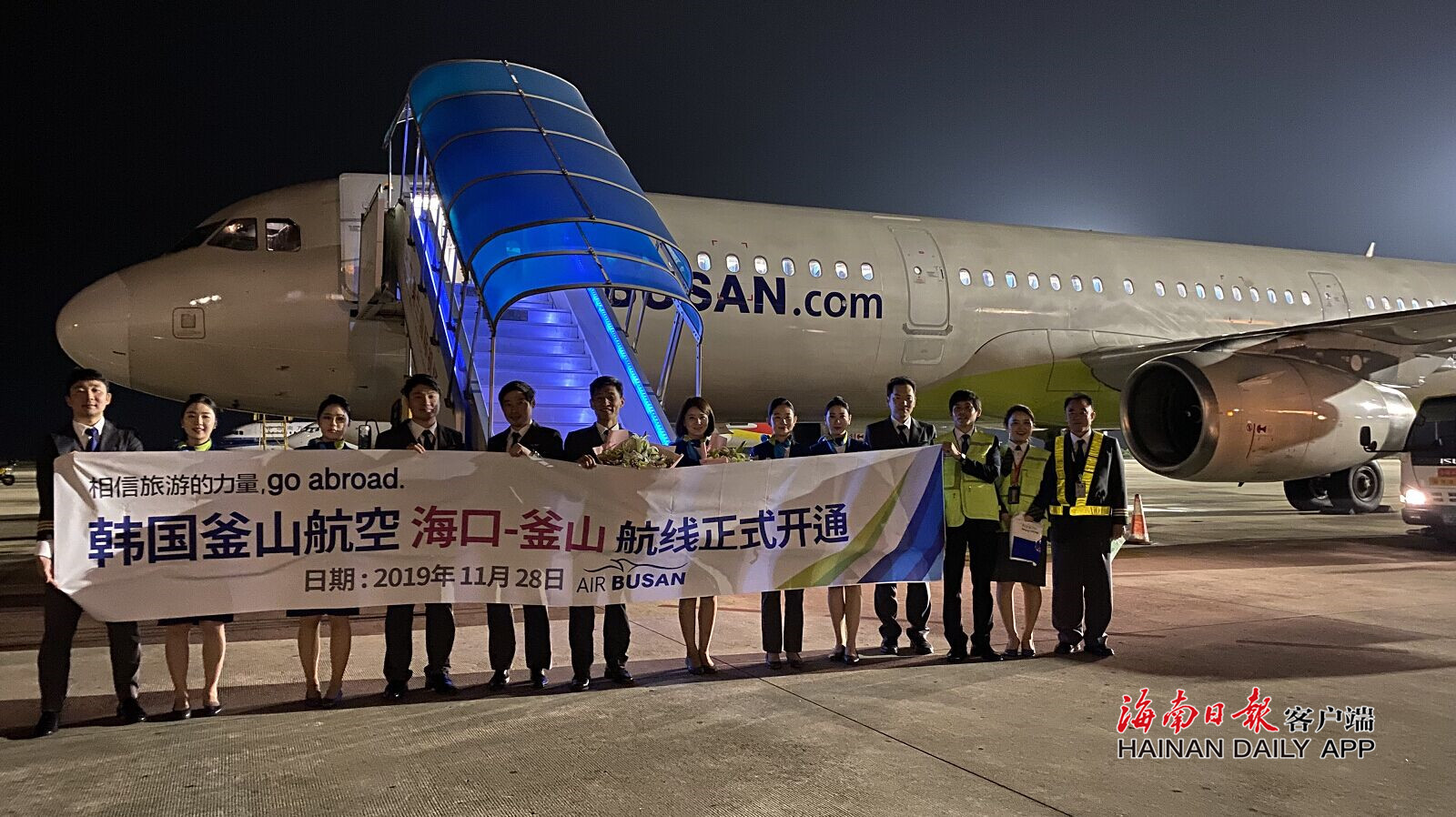 11月28日2时10分,随着釜山航空BX379航班缓缓降落海口美兰国际机场,标志着海口⇌釜山航线正式开通。据悉,这是今年美兰机场新开通的第9条国际航线,同时也是继首尔、清州之后,海口直飞韩国国内的第三个城市。