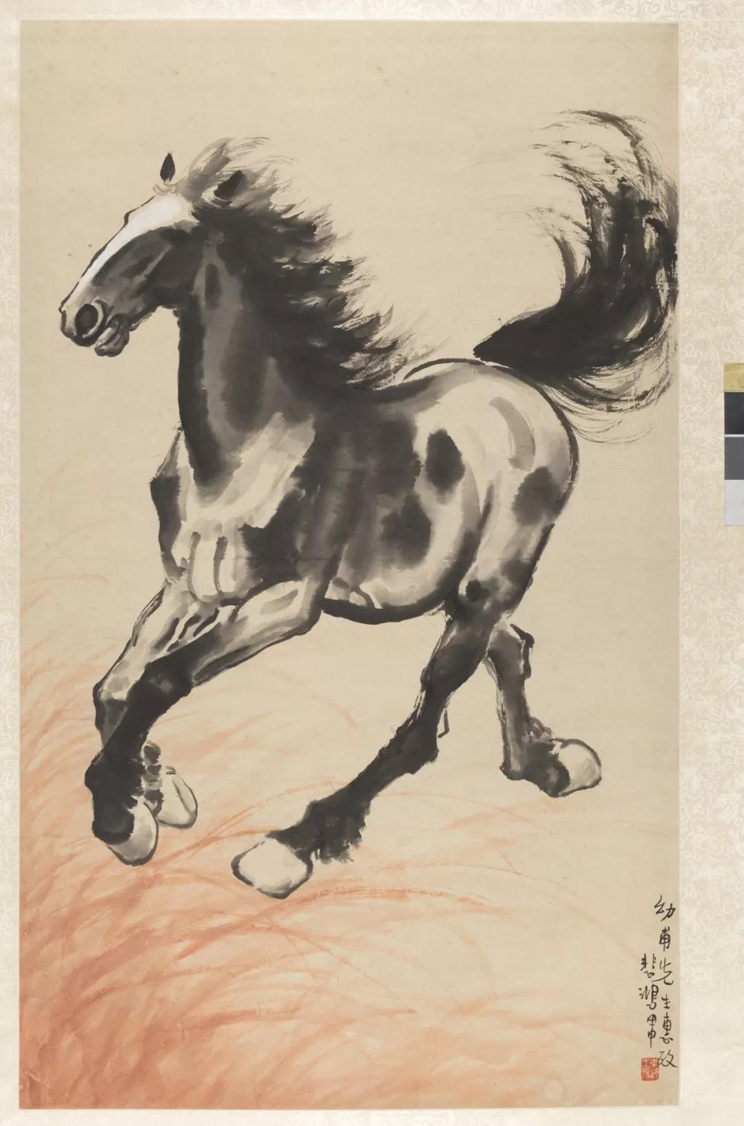 本次展览中就展出了一幅徐悲鸿在1944年创作的《奔马》图。