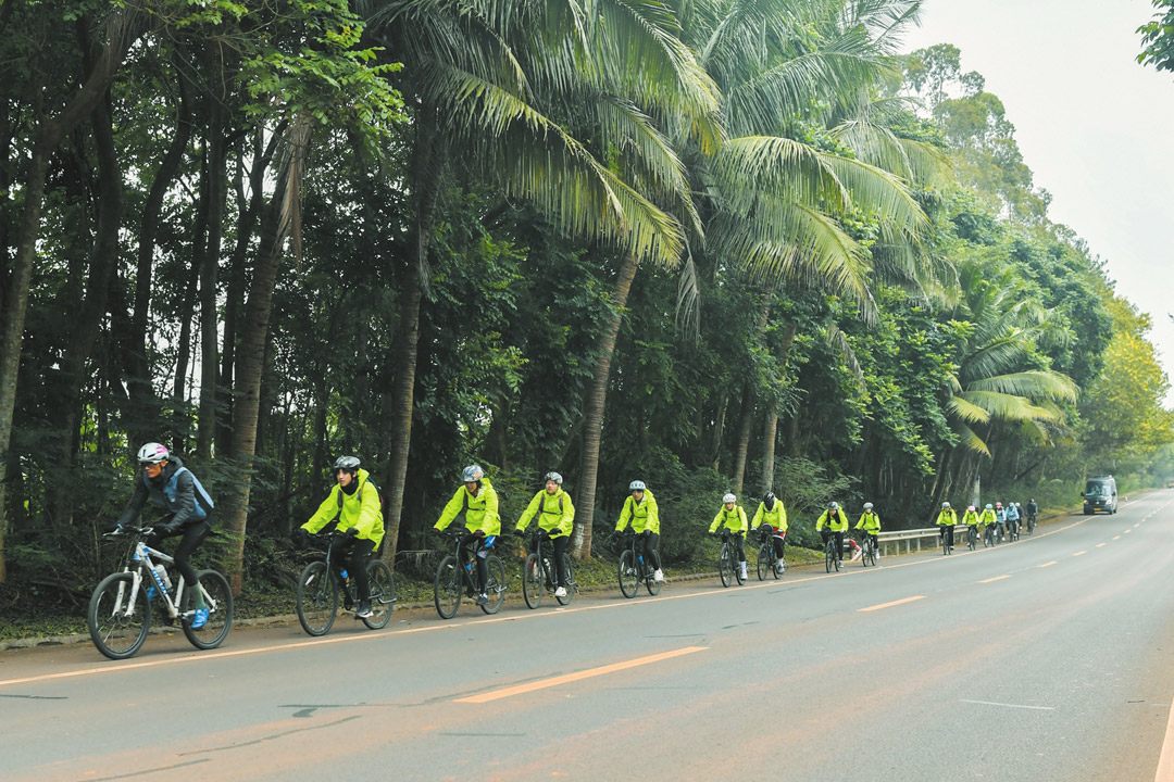 受强冷空气影响,海口近日出现大幅度降温天气。寒风中,一批沿海榆中线前行的骑行爱好者,成为冬日街头的一道靓丽风景线。