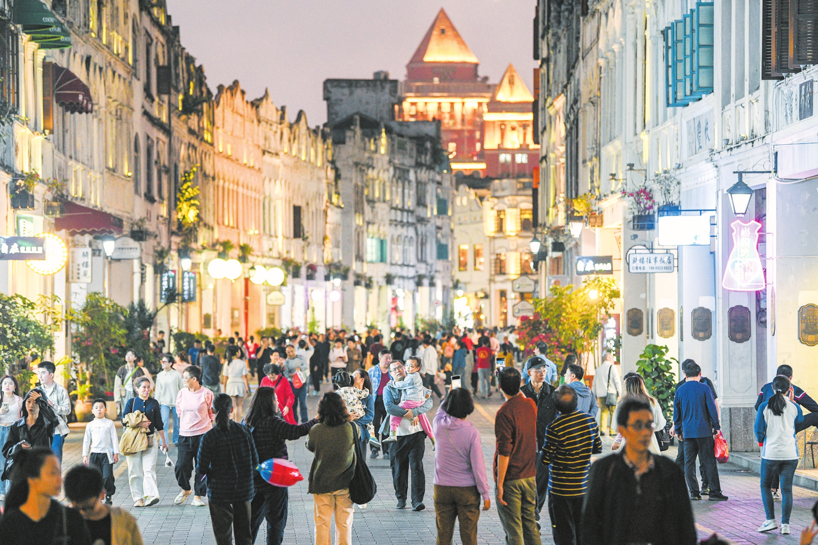 1月1日,充满南洋风情的海口骑楼老街吸引众多市民游客前来游玩。 本报记者 苏弼坤 摄