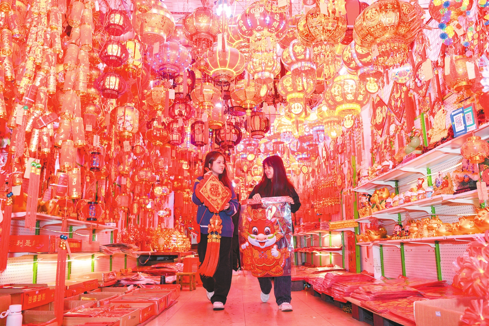1月28日,在位于博爱路的新年饰品商店内,市民正在挑选采购福字、春联等年货。本报记者 苏弼坤 摄