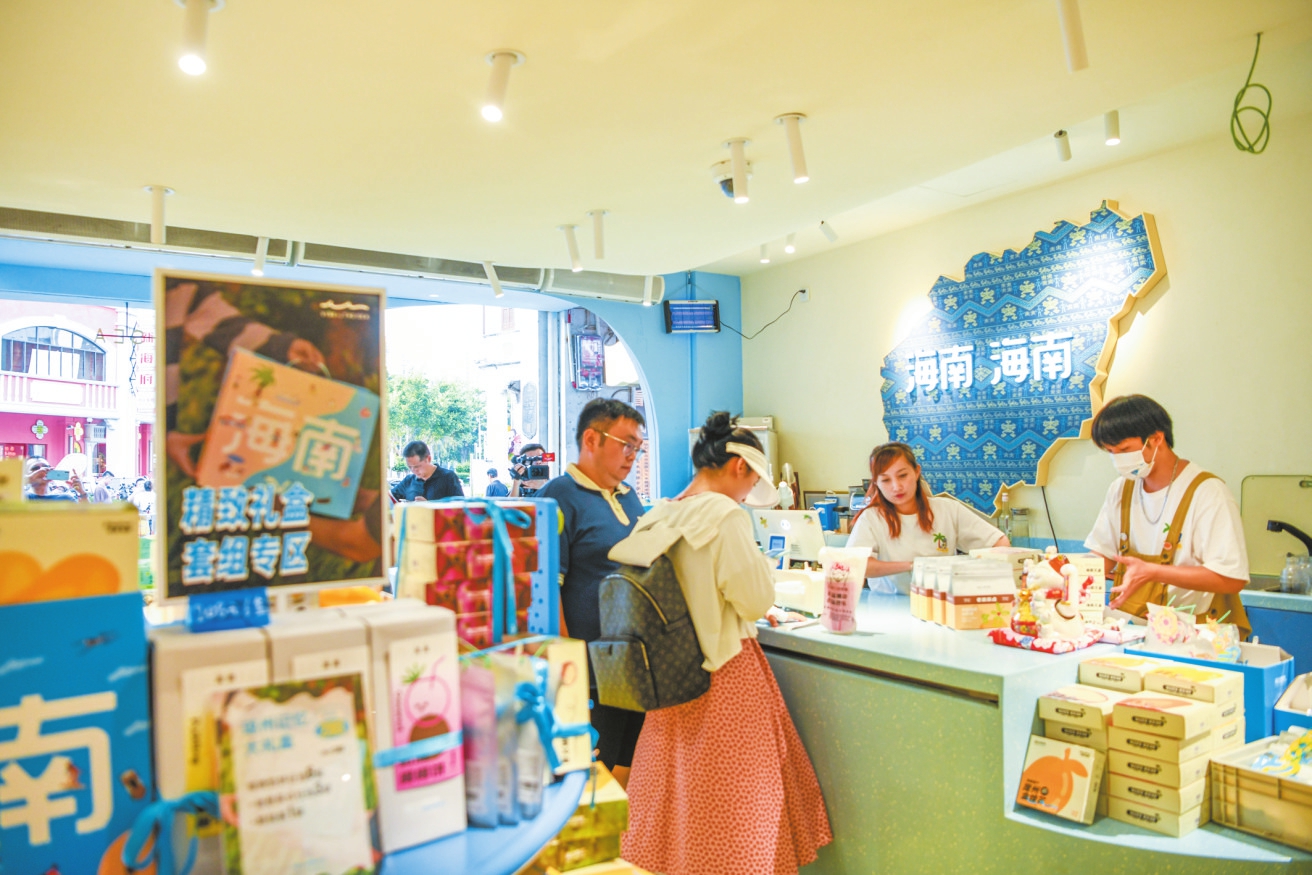 市民游客在位于水巷口的海边宽宽伴手礼店选购海南特色商品和文创作品。本报记者 康登淋 摄