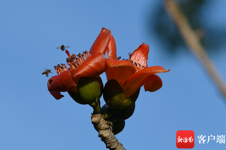 木棉树上的小蜜蜂。记者 陈卫东 摄