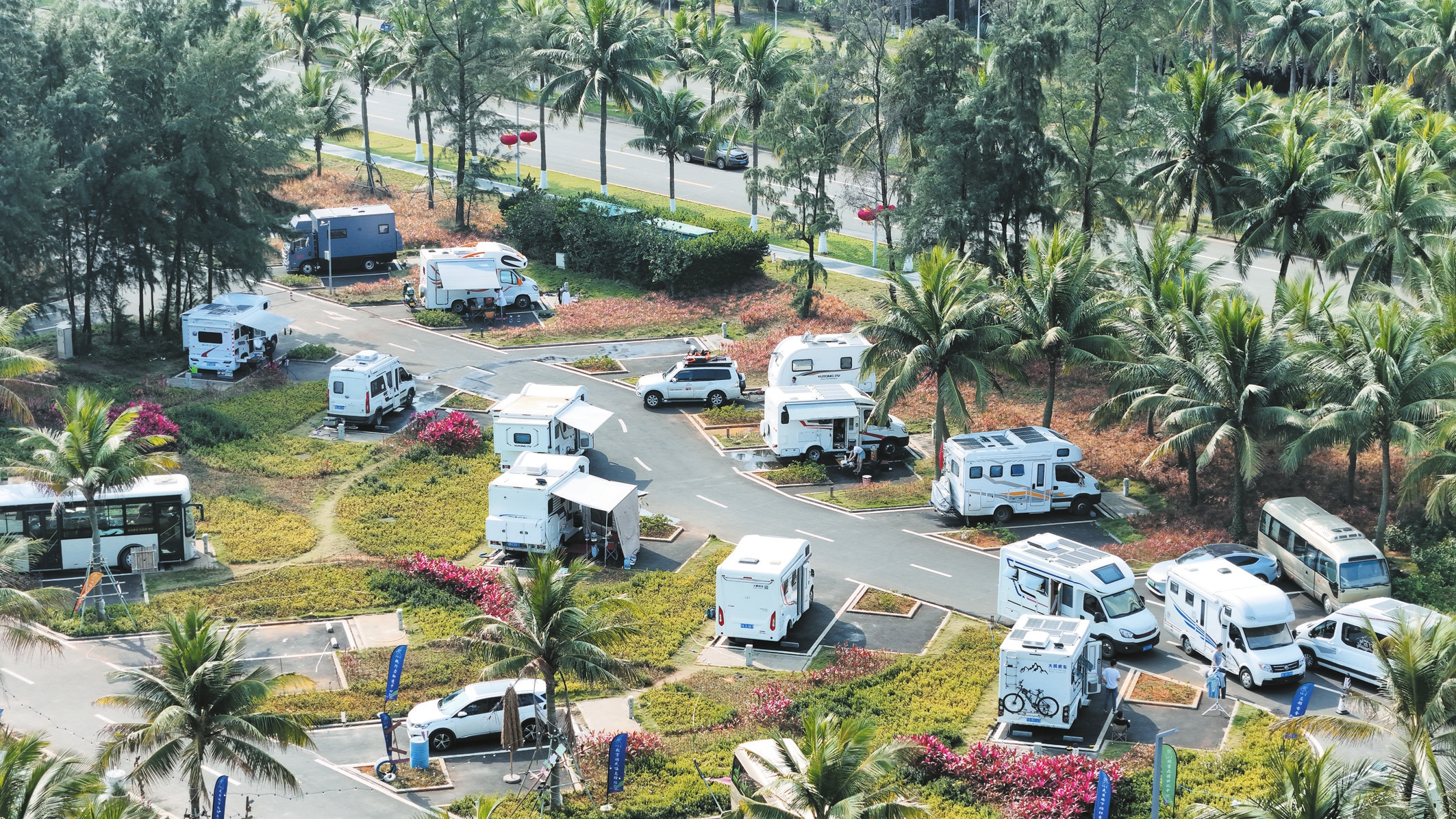 日前,海口西海岸带状公园房车营地,不少车主安营扎寨,在乐享热带滨海风光的同时,也给西海岸的旖旎景色增添了一抹亮色。