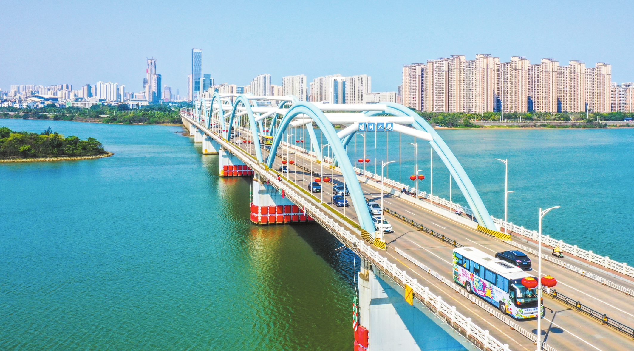 2月21日,观光巴士通过琼州大桥。本报记者 康登淋 摄