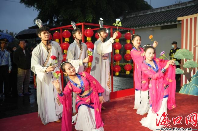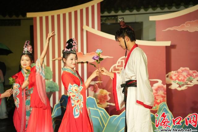 2月24日消息,2月24日(农历正月十五),海口府城元宵换花节活动正火热进行,当晚,在海瑞故居点位现场举行名为“飞花令”的换花舞活动表演,国风舞曲音律和新颖的舞蹈编排展现出一场恰逢其时的美好场景,给市民游客送上美好的节日祝福。同时,在优美的换花舞场景中为市民游客穿插了府城历史文化知识有奖互动游戏、古人互动、个人才艺展示、背诵古诗词等体验节目,市民游客热情高涨,参与氛围十分浓厚。