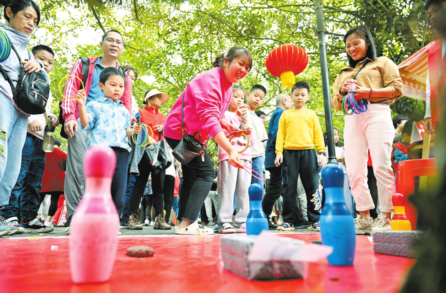 2月24日,海口火山口公园内开展的元宵主题活动热闹非凡,市民游客正在参与套圈夺彩游戏,现场氛围十分欢乐。本报记者 石中华 摄