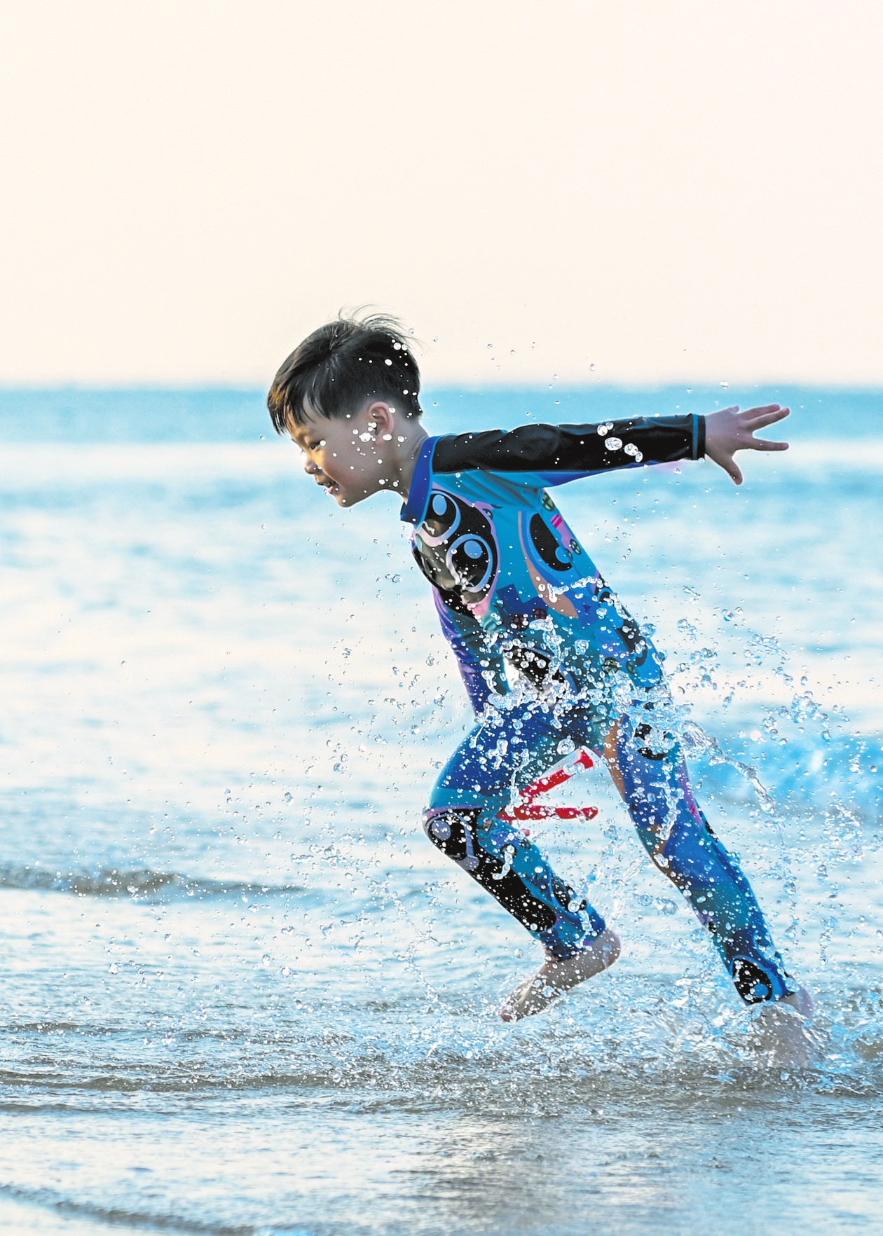 2月21日,在海口西秀海滩,小朋友正在踏浪嬉水,好不快活。本报记者 石中华 摄
